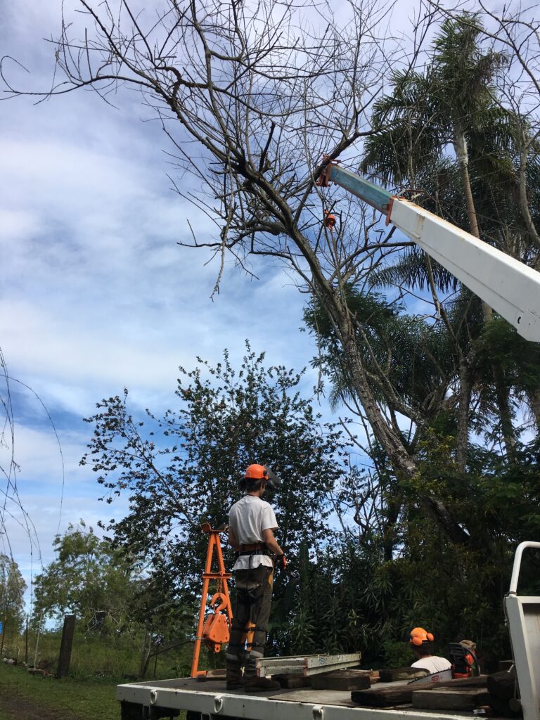 (Above) Helping a tree service drop a limb off a tree so it doesn’t fall in the neighbor’s yard.